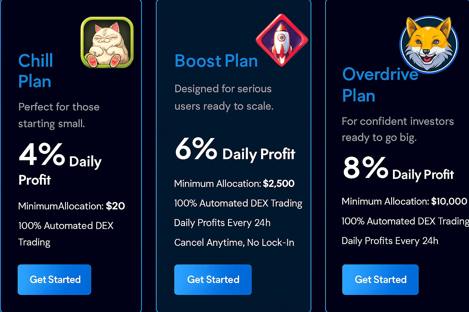 We make memecoin trading profitable and accessible — no charts, no analysis, no stress. Forget chasing new launches, breaking down tokens, or worrying about scam projects. Just choose a plan, and our system handles the heavy lifting for you. Our AI-powered bots scan decentralized exchanges 24/7, hunting for real opportunities while filtering out scams and fake coins. Every trade is backed by data, logic, and battle-tested algorithms — not just hype. Behind the code is a team of developers with real-world experience who’ve navigated every cycle and avoided every trap. Artificial intelligence + expertise = consistent daily profits. No manual trading. No sleepless nights. Just activate a plan — and let the system do the work.
